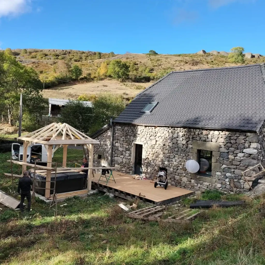 En février 2019, nous avons eu un véritable coup de cœur pour une vieille ruine au toit éventré, nichée dans le village familial de Guillaume, en plein cœur du Cantal. Dès les premières visites, nous avons imaginé en faire un havre de paix, un lieu de vacances chaleureux où partager de beaux moments.